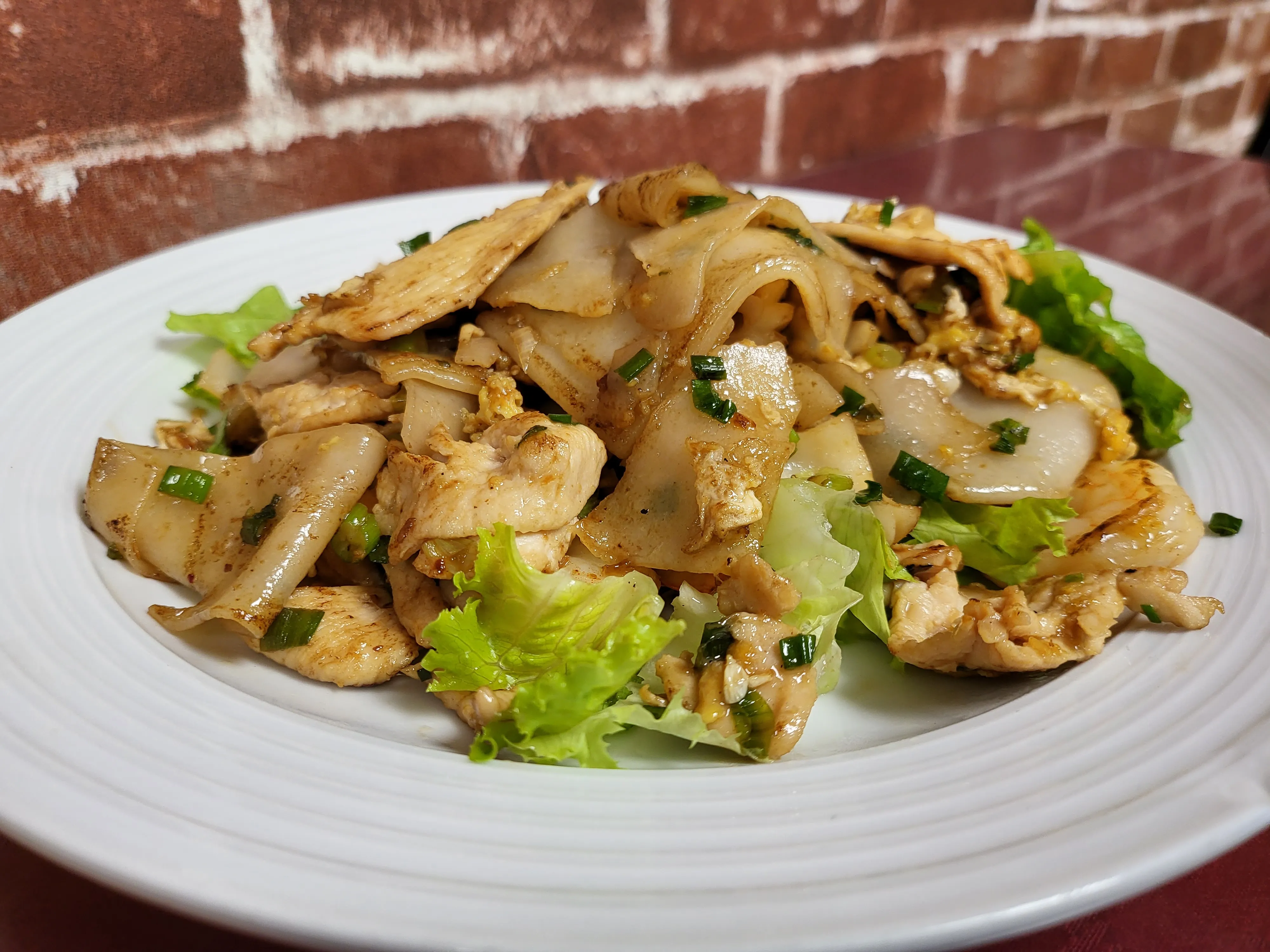 Stir-Fried Flat Noodle With Your Choice Of Meat, And Customizable Vegetables.